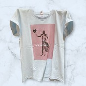Half-sleeve T-shirts with La vie romantique 5th print.