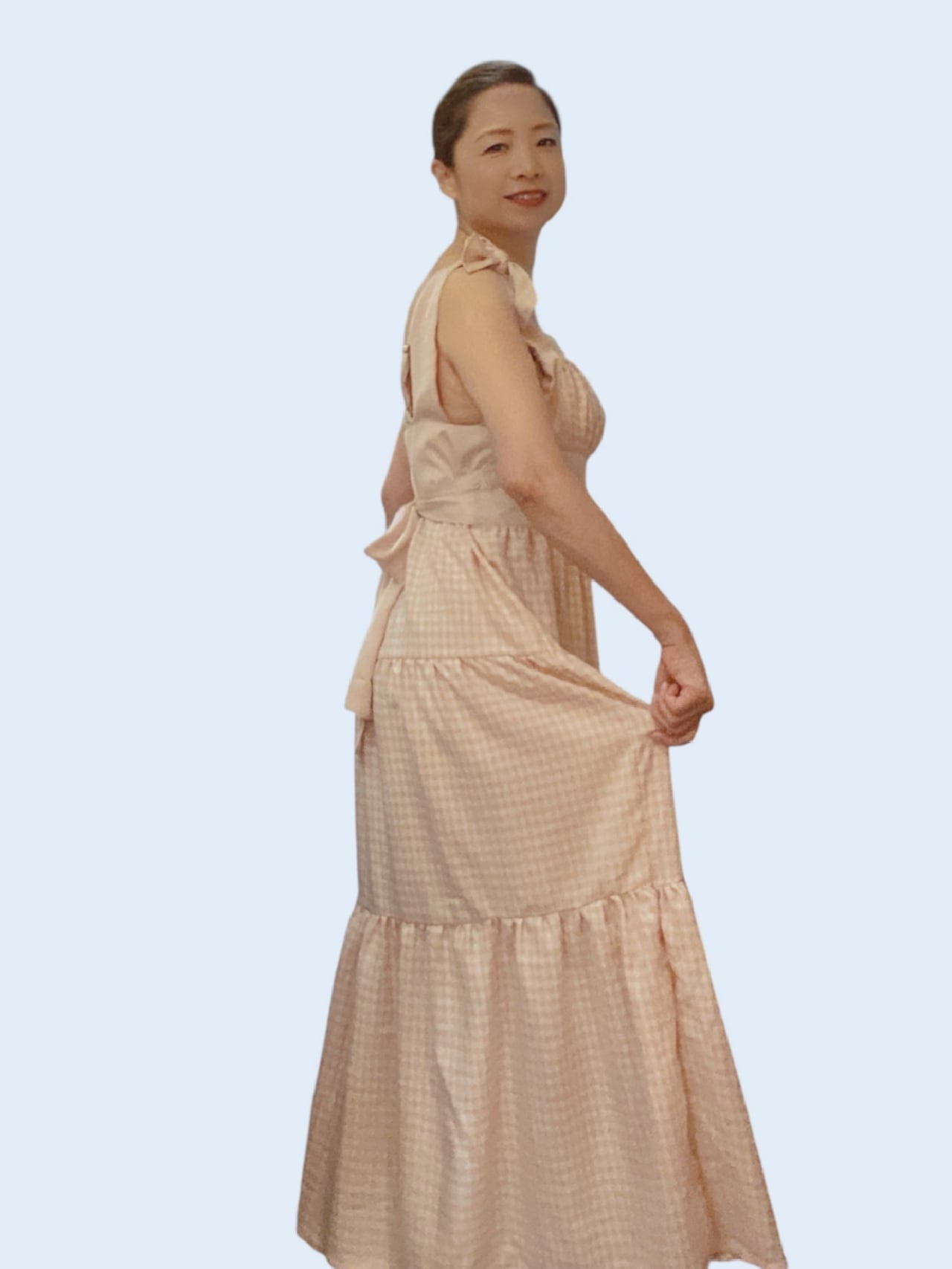 コットンベースのフランネル生地でガーリーなエプロンドレスを作りました