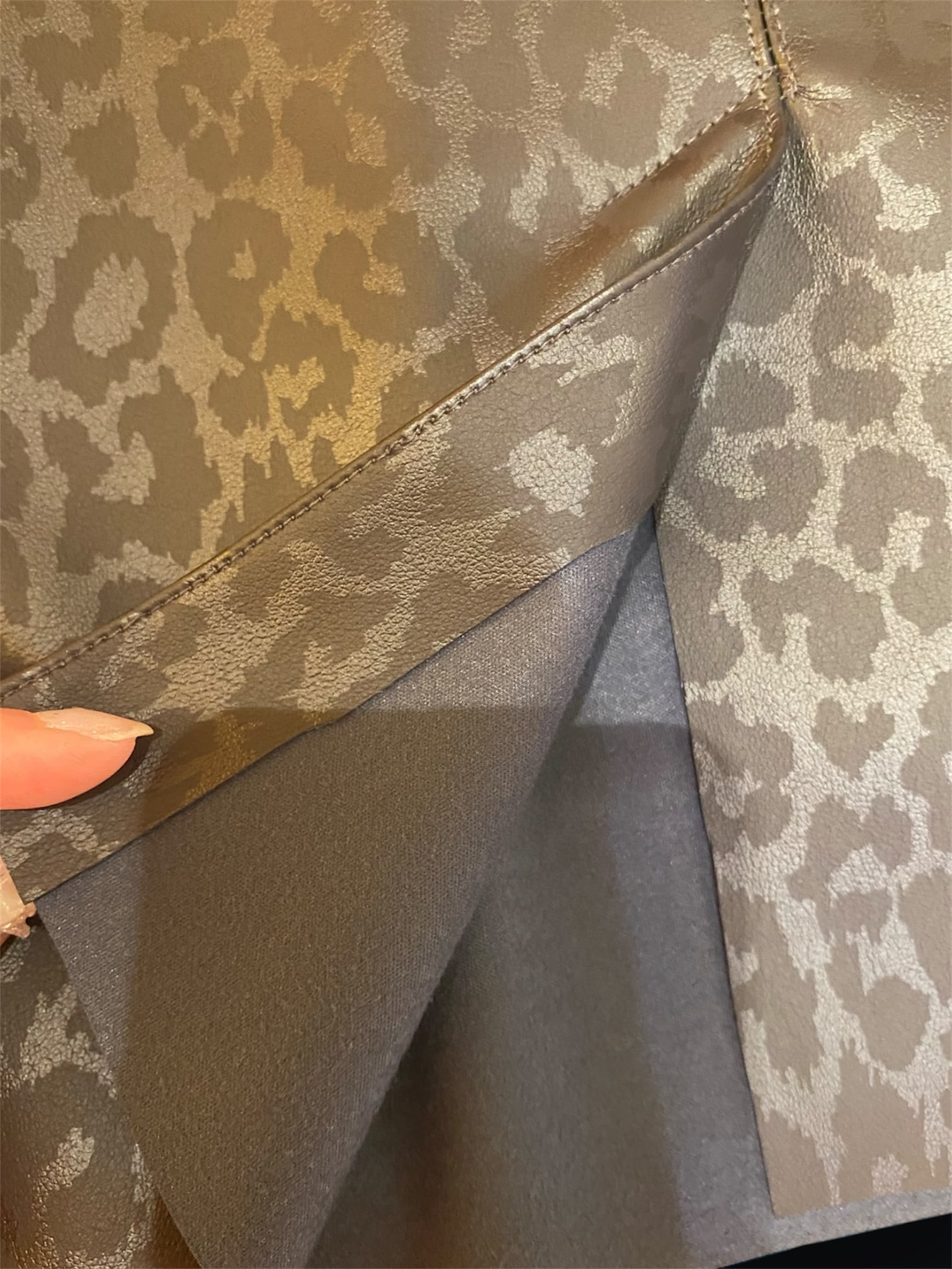 ストレッチ性高く 贅沢な光沢が特徴的な合皮のお生地で サラサラとして楽々な着心地