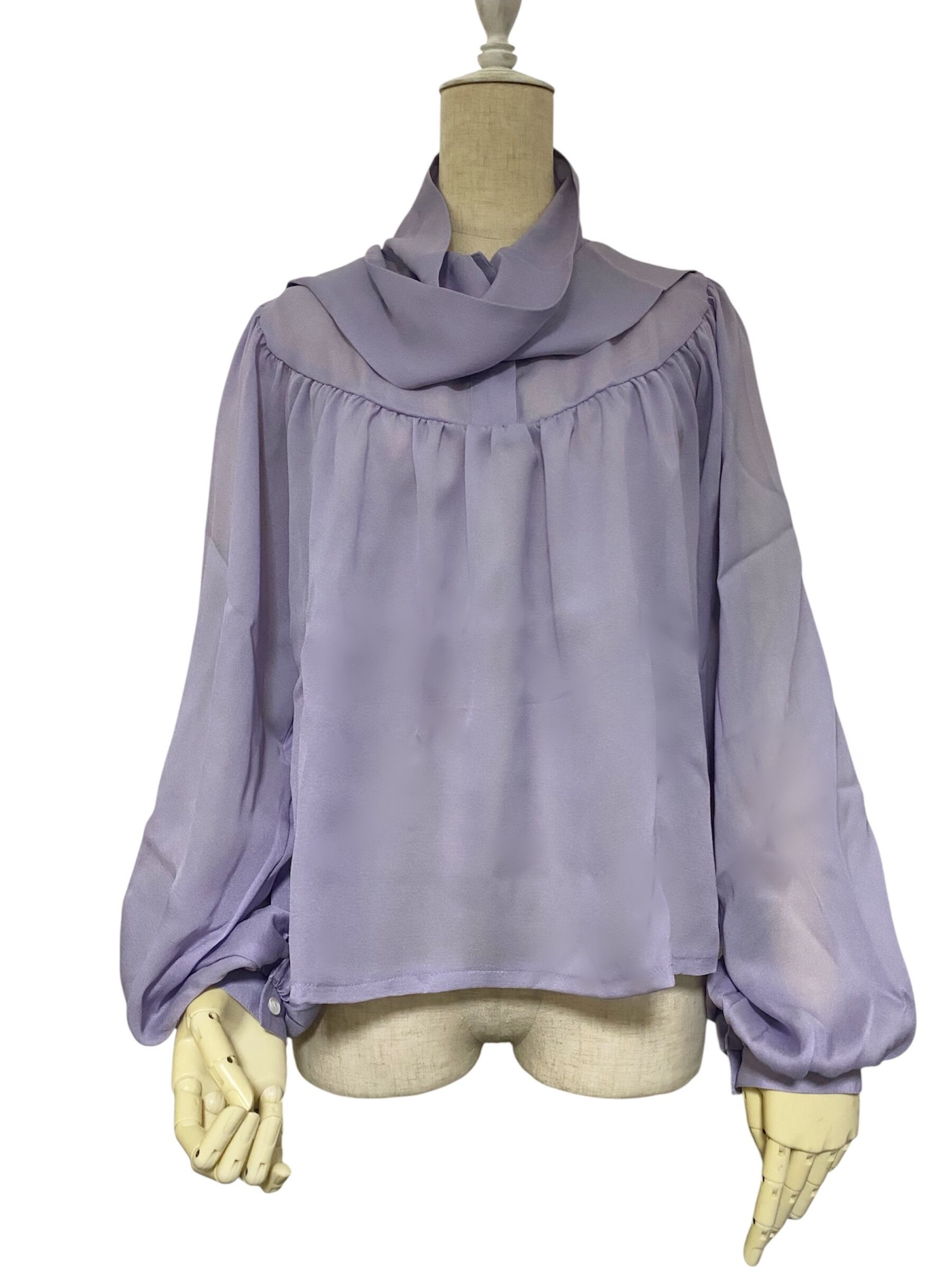美しい服地によるドレープが際立ち たっぷりとられた袖や裾幅 襟元のボウタイが ゆったりとお身体を包みます