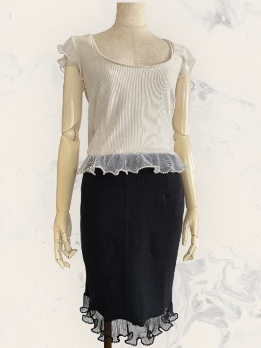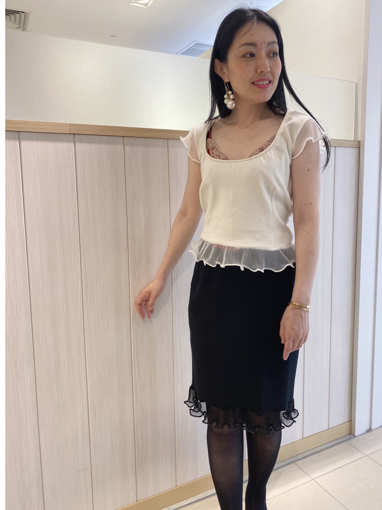恥ずかしがりなお膝を 美しく飾るチュールプリーツとビーズのフリルが特徴