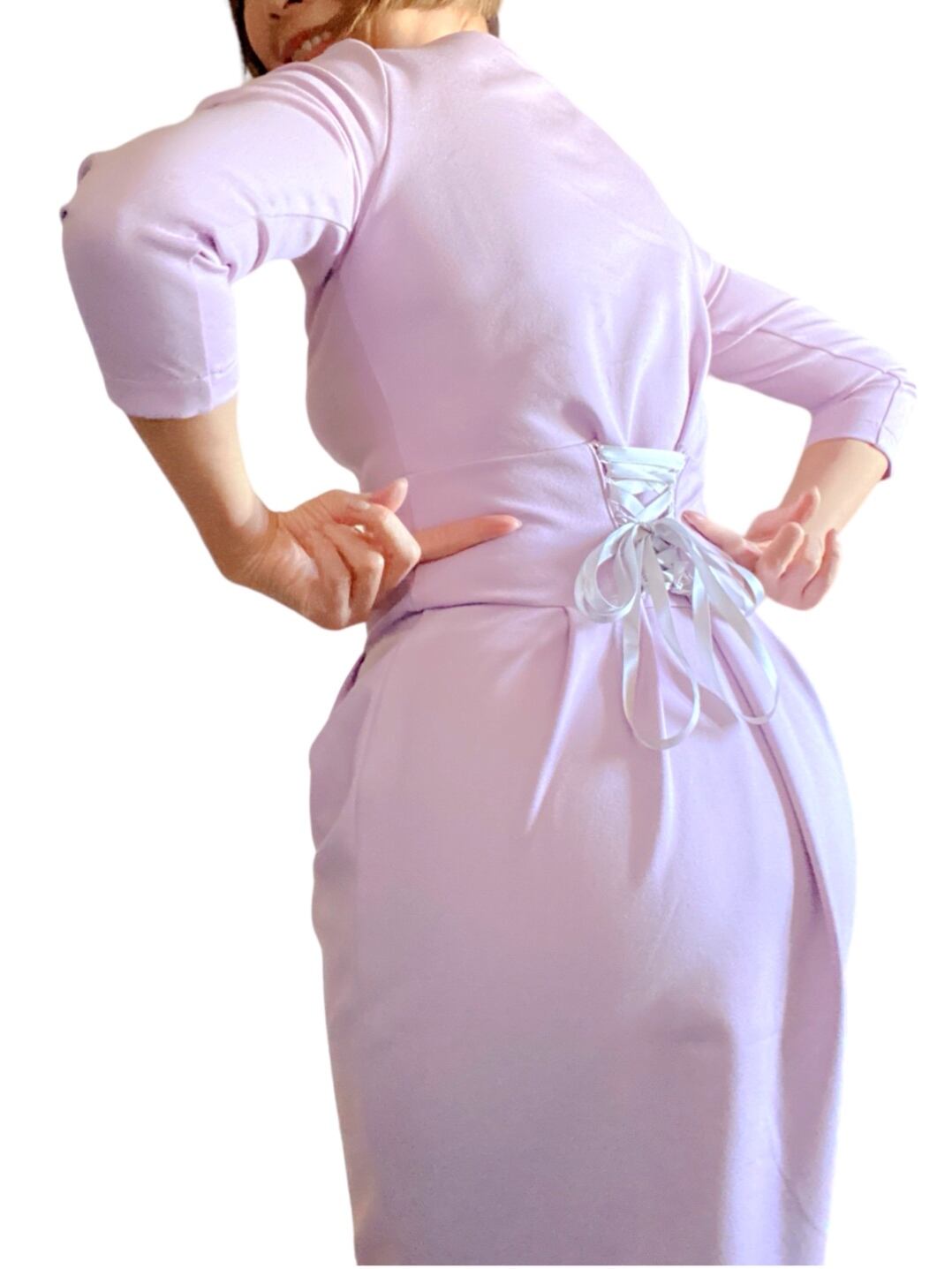 質感も身体の線が出にくいので 安心の着心地ですウエストの切り替え&背部のコルセット仕様で メリハリBodyを演出してくれる大好評お勧めのデザインです♡