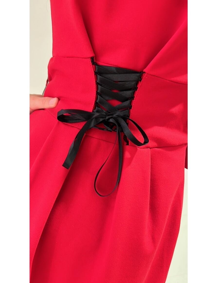 胸元にスッキリ開いたV字のカットと 後ろのレースアップがポイントのシンプルでフォルムの美しいミニドレス