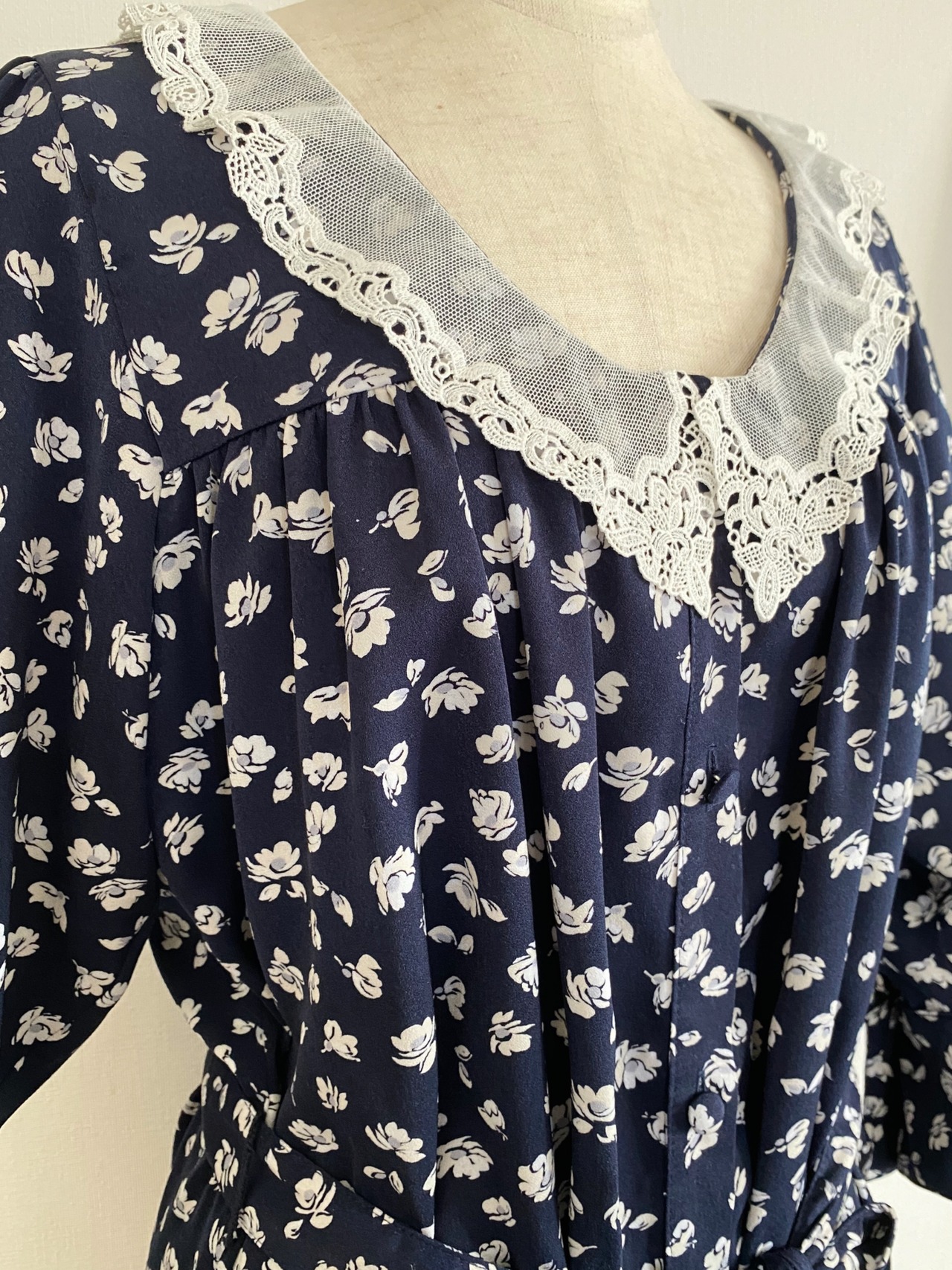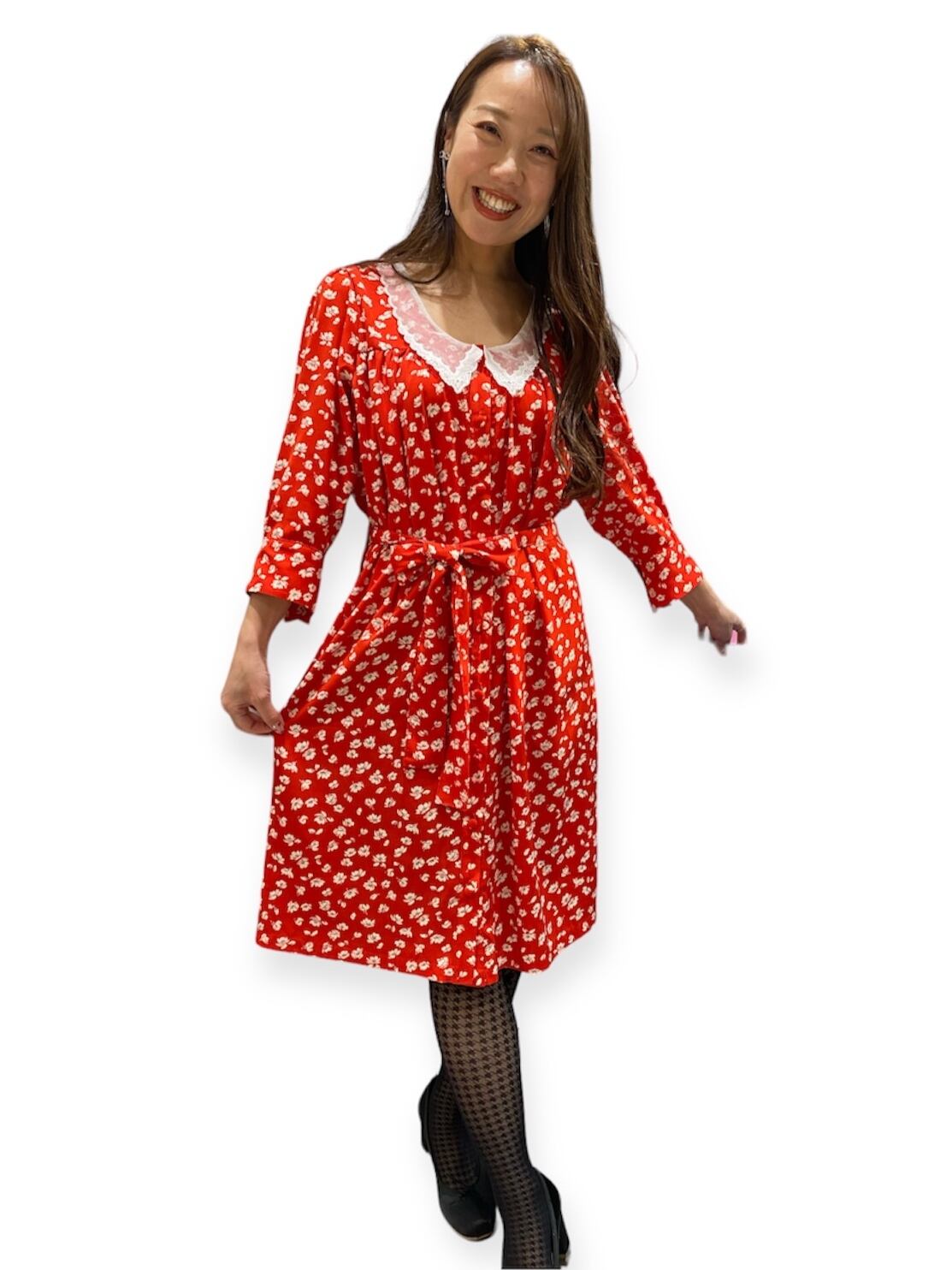 フラワープリントのサラサラでシルキーな生地を 春一番に着たくなる優しいワンピースに仕立てました