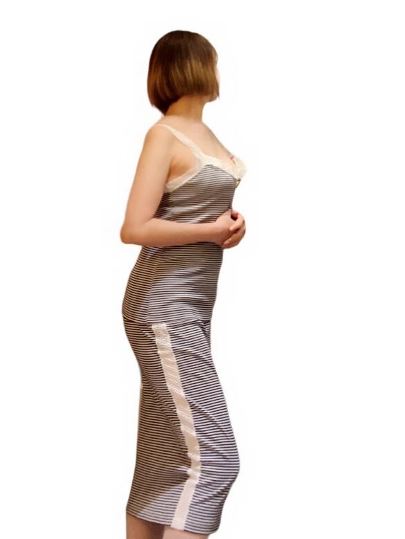 脇の側章的なレースと 前身の飾り金ボタンがポイントです