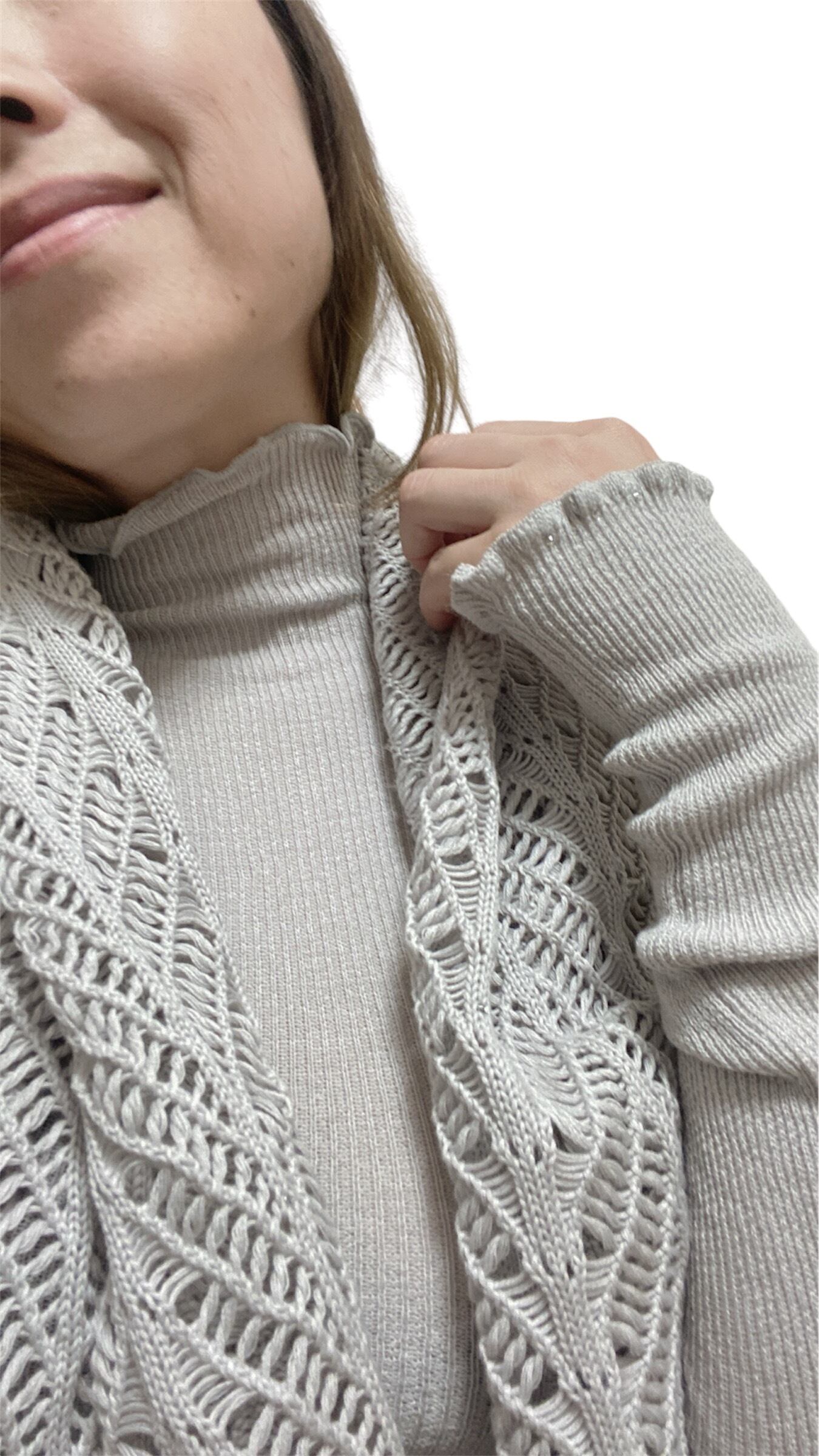 ルサロンディ特注の艶のあるコットン糸を12分袖のスラッとセーターに仕上げていただきました